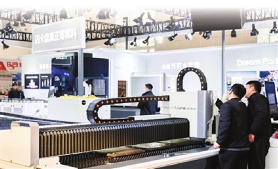 在第21届天津工博会上,参展企业展出大功率激光切割机