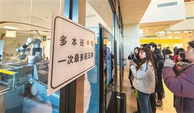 “馆内全域搭载智能化管理系统,全流程操作便捷高效。”在自动还书机旁,吴凡凡给记者演示了“一键还书”——她轻点“还书”按键,将书籍放入还书口,内嵌芯片的图书依托智能轨道自动完成身份识别、分类分拣与高速传输,点对点精准归位至各楼层立体书库,全程自动化流转、无人化操作,大幅提升了图书流转效率与读者借阅还书体验。