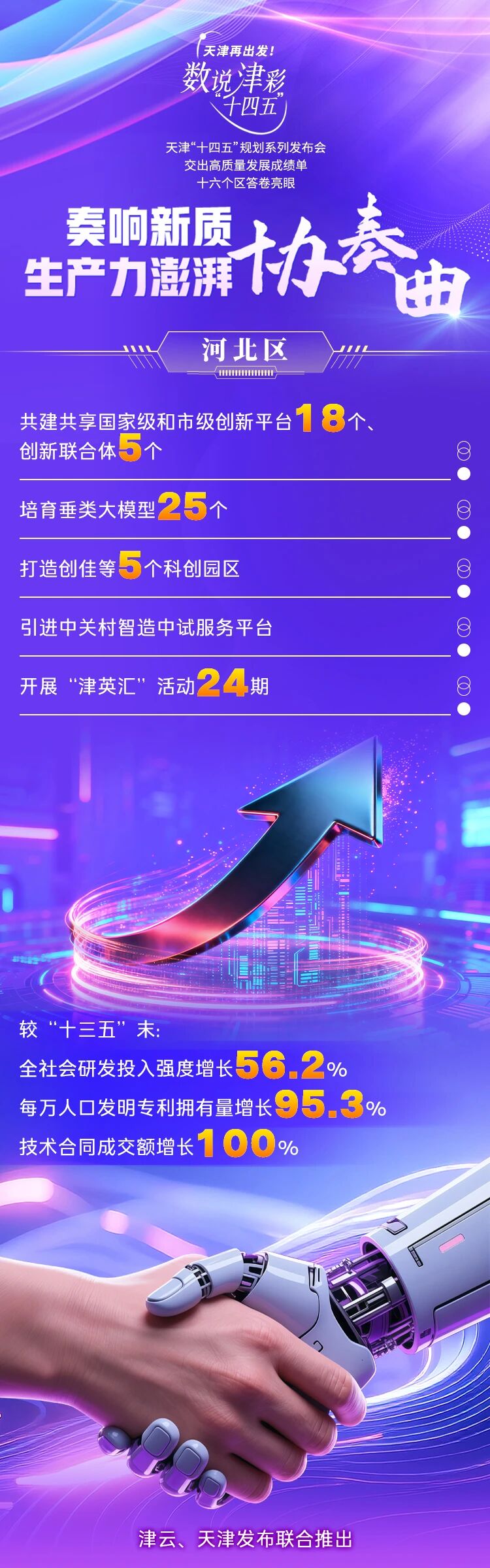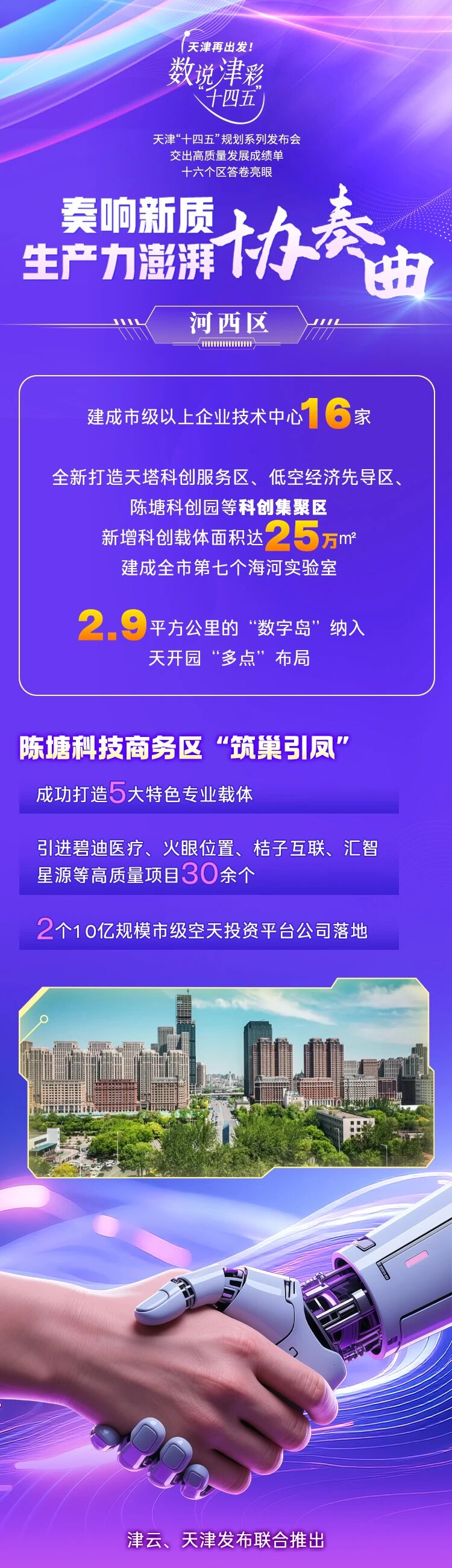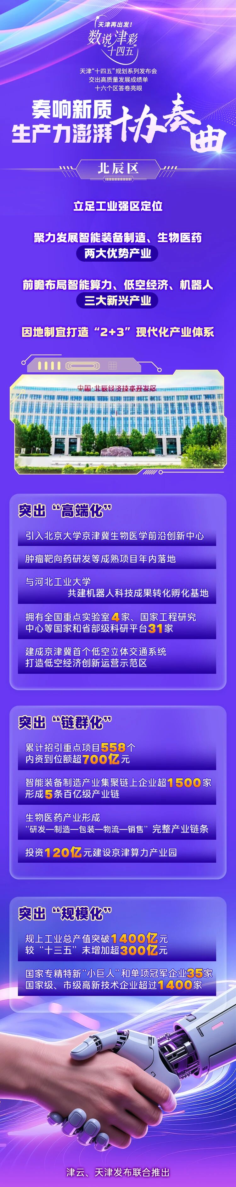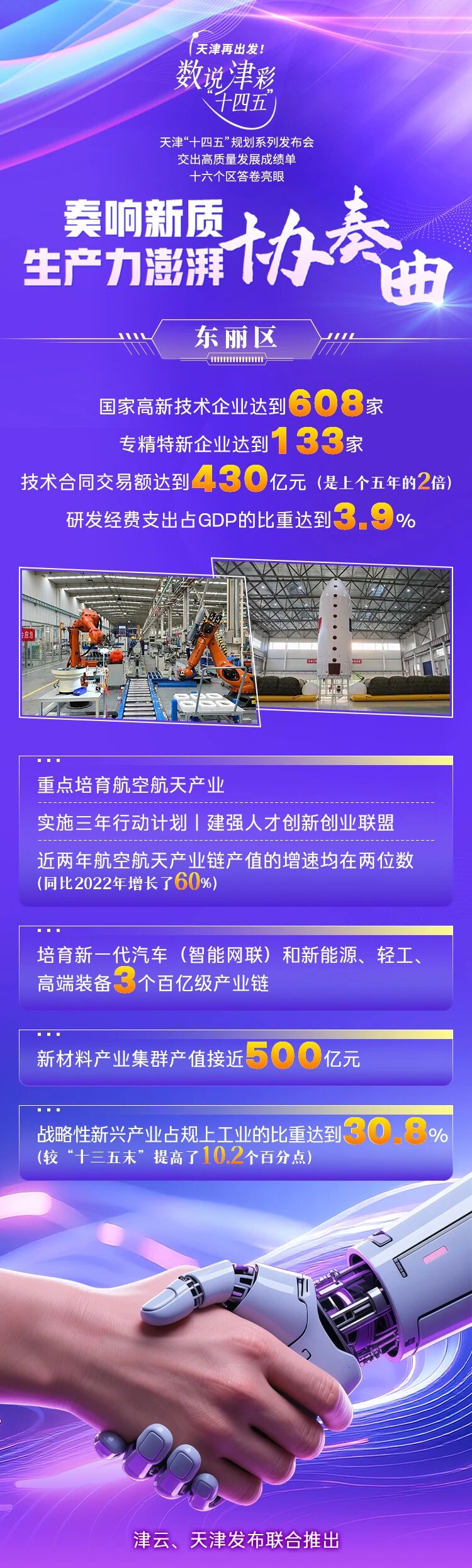 天津发布联合津云推出数说津彩“十四五”系列海报,今天让我们一起来看“十四五”期间,天津各区在新质生产力方面的亮眼答卷!