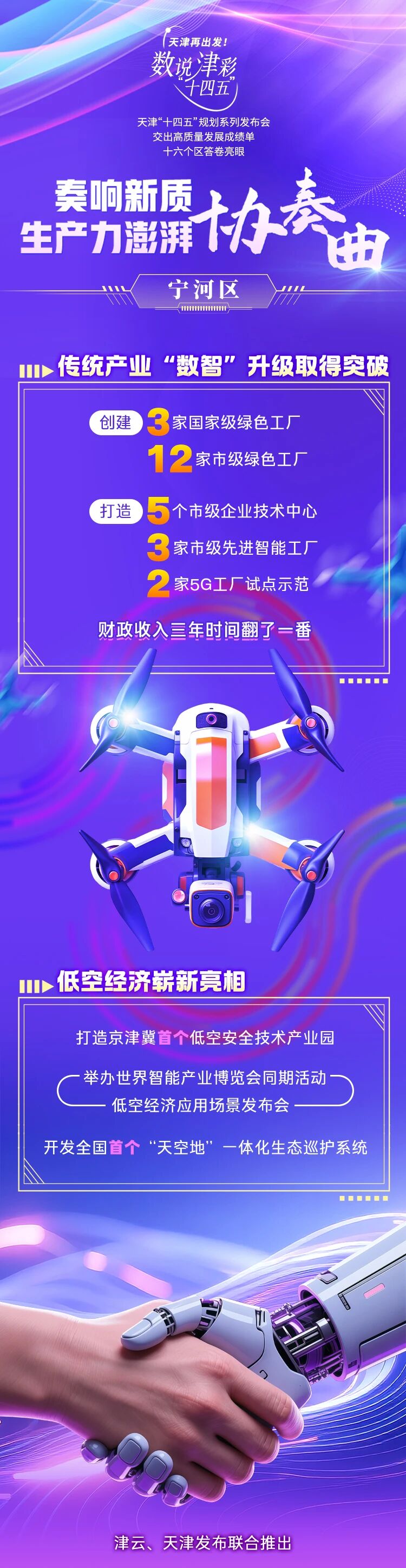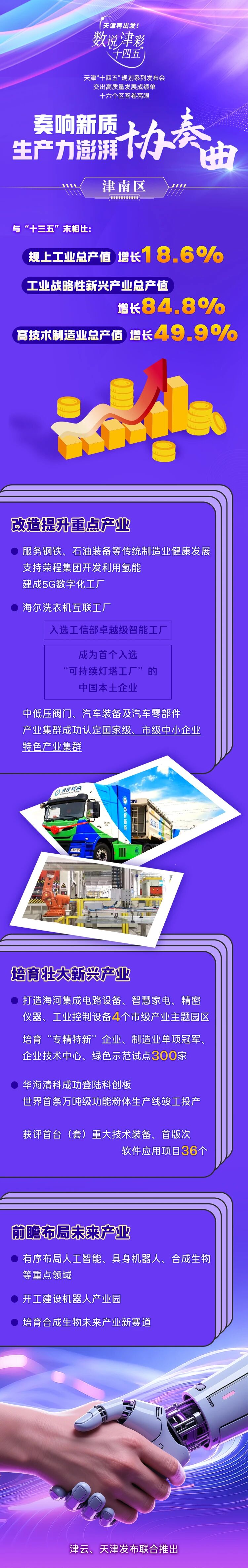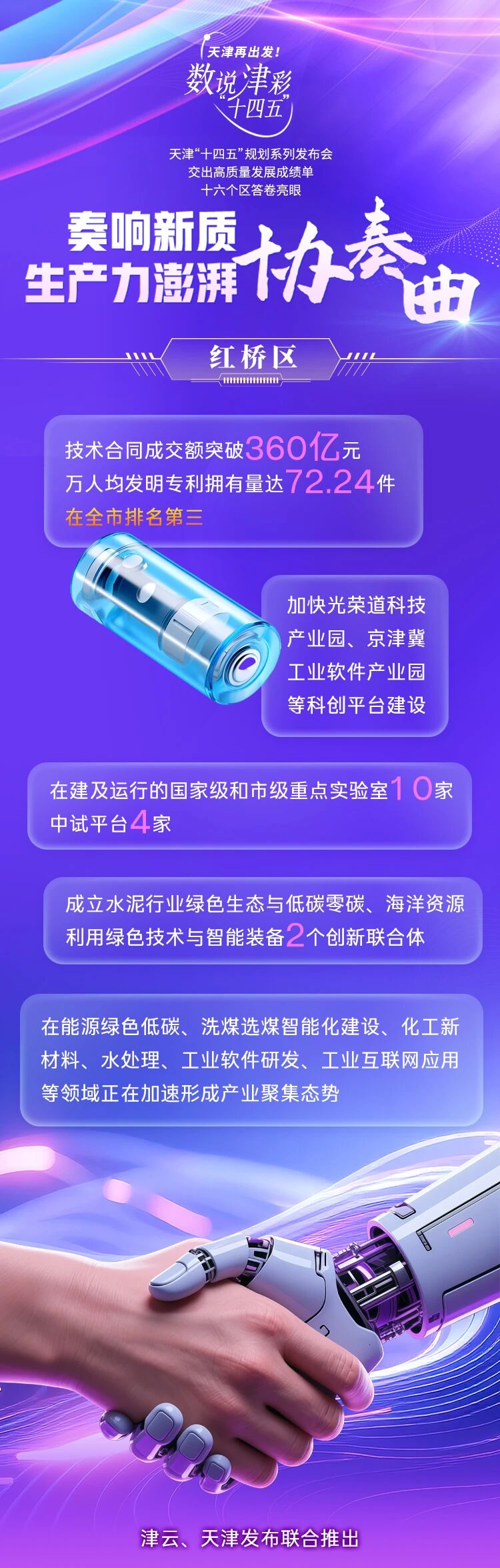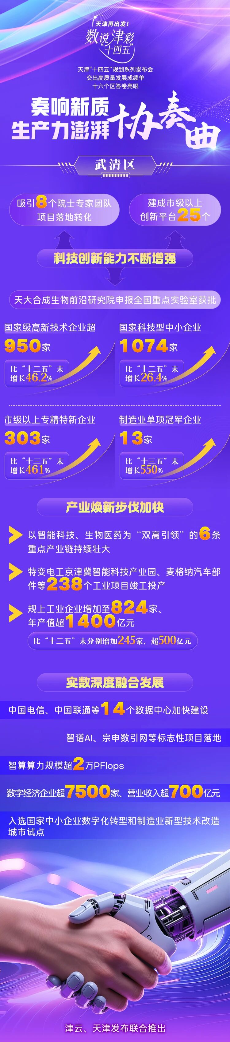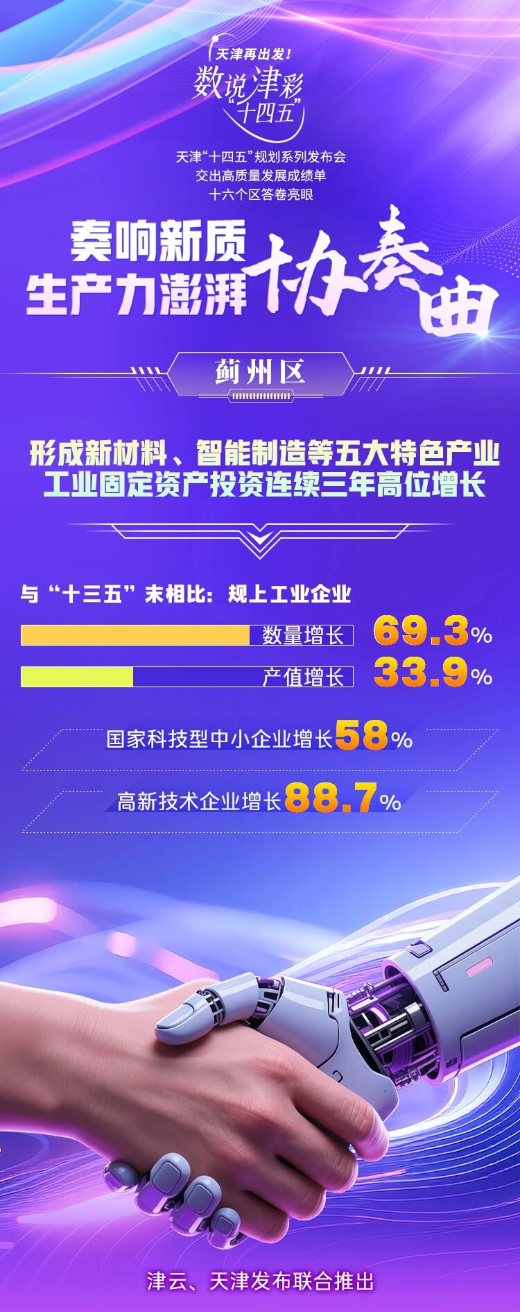 天津发布联合津云推出数说津彩“十四五”系列海报,今天让我们一起来看“十四五”期间,天津各区在新质生产力方面的亮眼答卷!