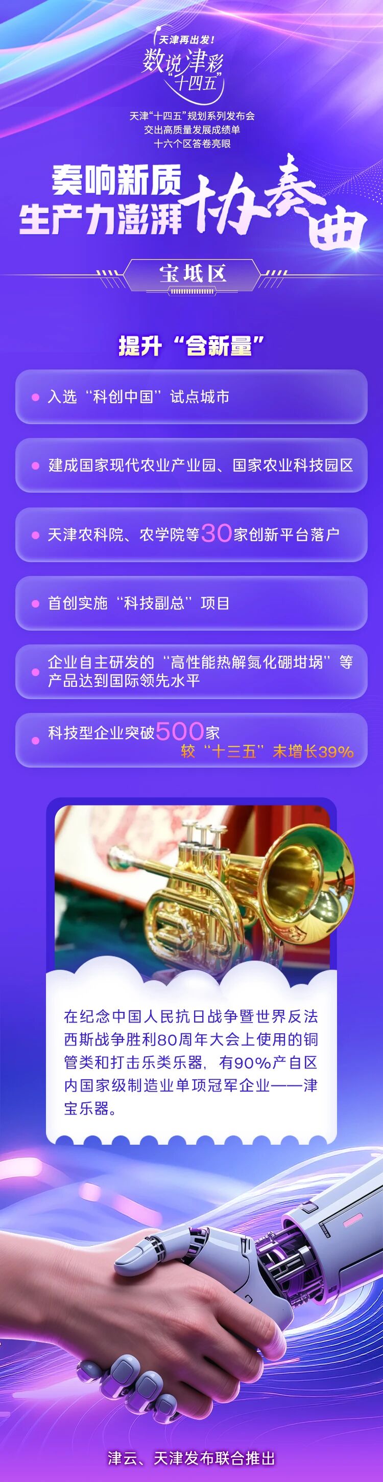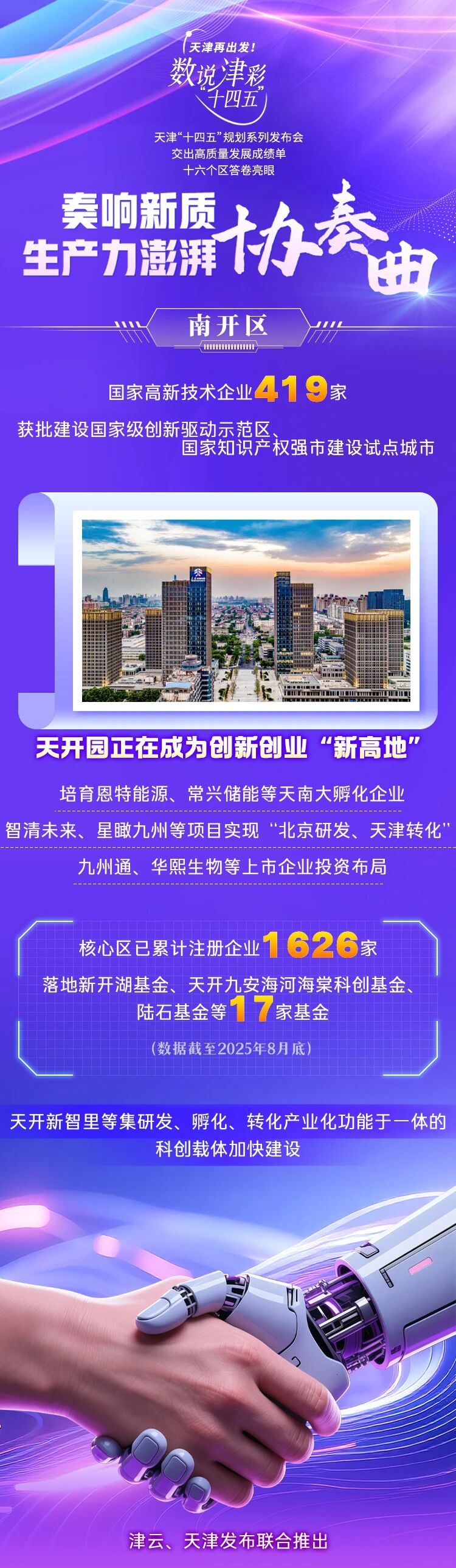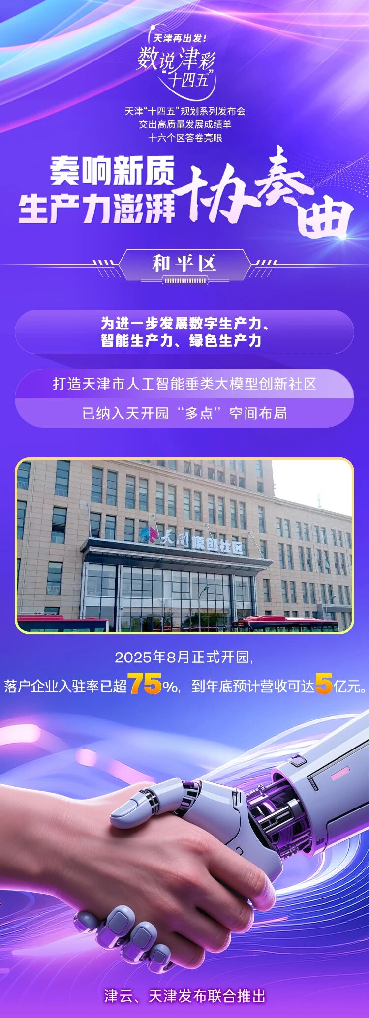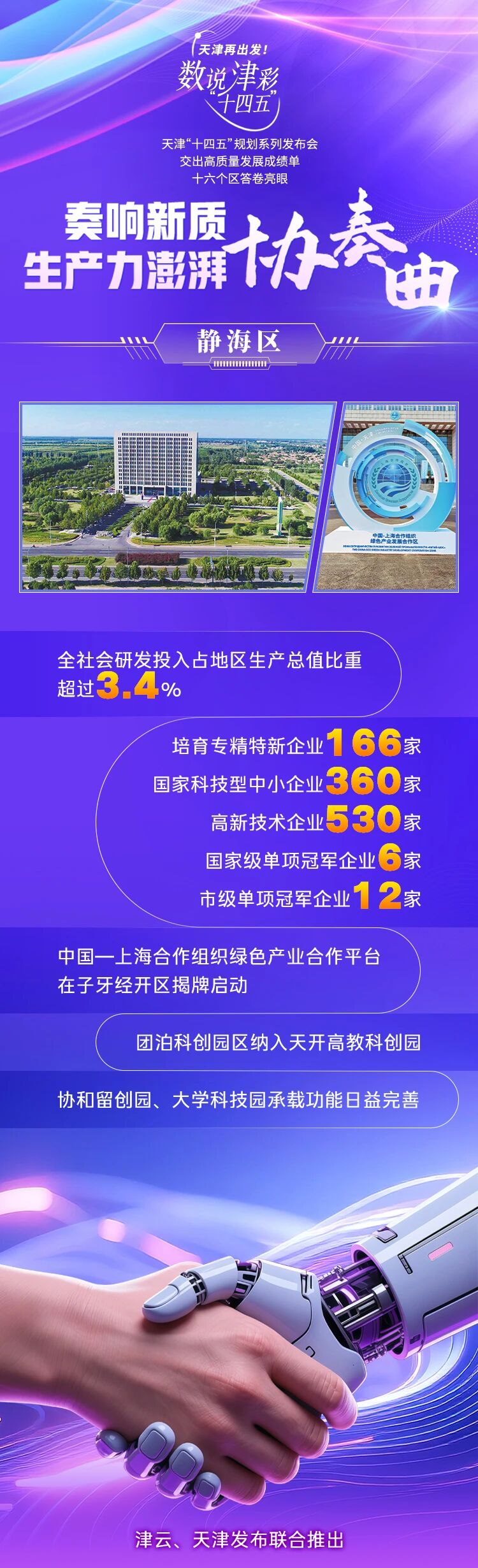 天津发布联合津云推出数说津彩“十四五”系列海报,今天让我们一起来看“十四五”期间,天津各区在新质生产力方面的亮眼答卷!
