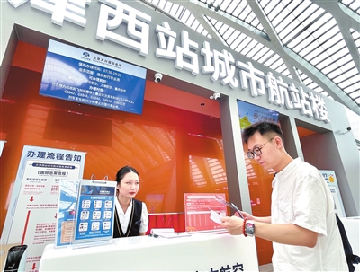 天津西站城市航站楼日前投入使用,搭建起北京大兴机场天津西站值机“一站式”服务场景。 记者 张磊 摄